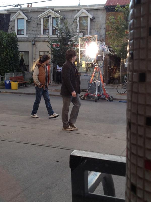 These aren’t the first shots to make their way onto the internet. Earlier in production there have been tweets by director Jeff Wadlow showing off a coffin full of guns, as well as an image of Chloe Moretz riding on Christopher Mintz-Plasse’s back from Plasse’s Twitter. You also see Aaron Johnson (Dave/Kick-Ass) filming a dialogue scene with Clark Duke, who plays Marty/Battle Guy.